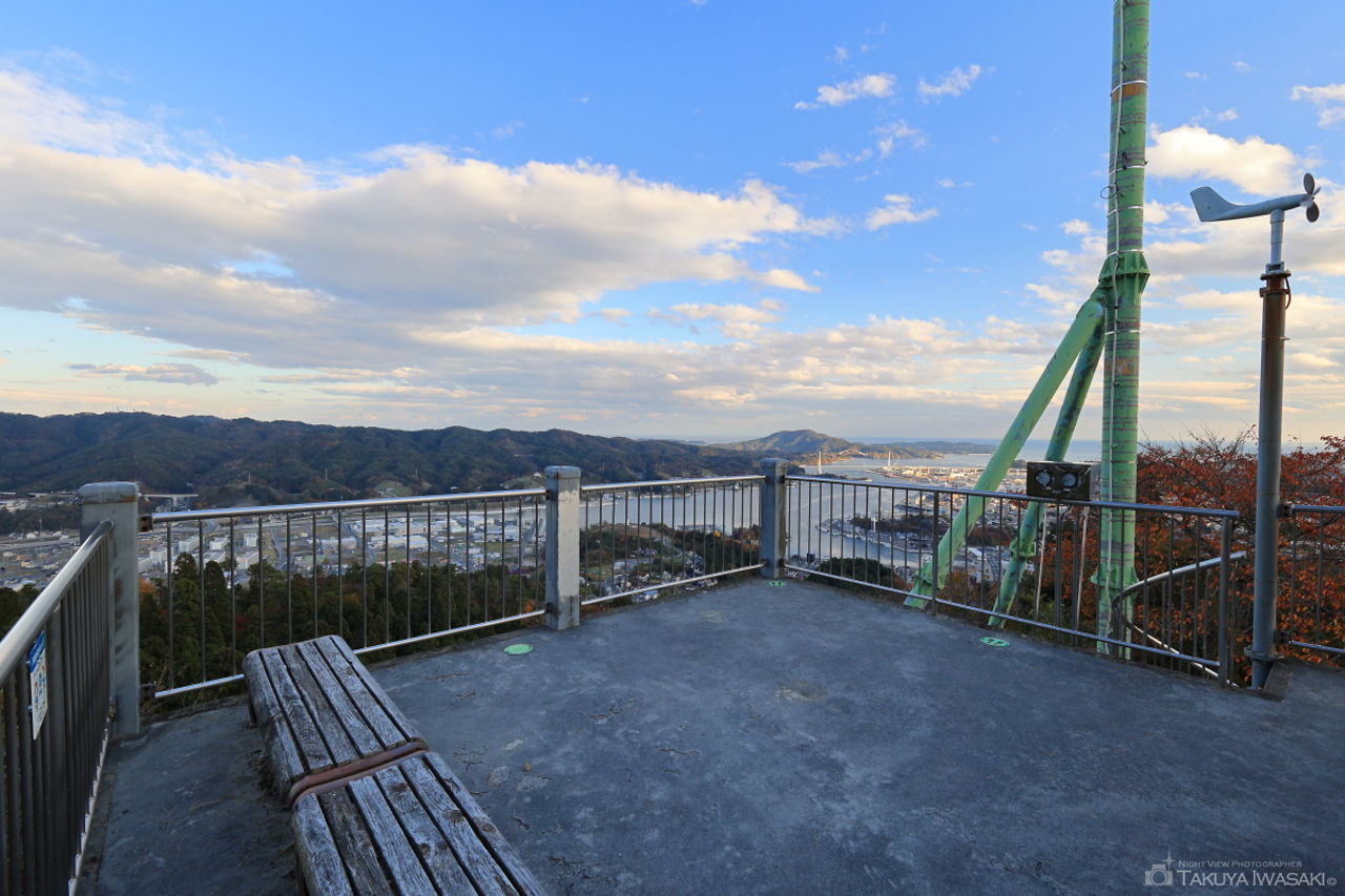 安波山にある3つの展望台で最も手軽にアクセスできる展望テラス。高度はそれほどありませんが、気仙沼湾中心部の夜景が見渡せます。