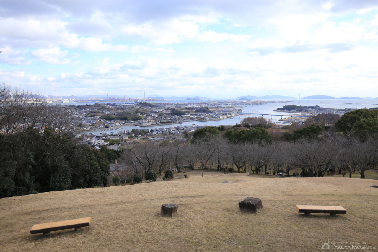 標高78mの小さな山に整備された自然豊かな公園。頂上の展望広場からは見晴らしが良く、水島コンビナートを中心に360度近い夜景が見渡せます。駐車場から7分程...
