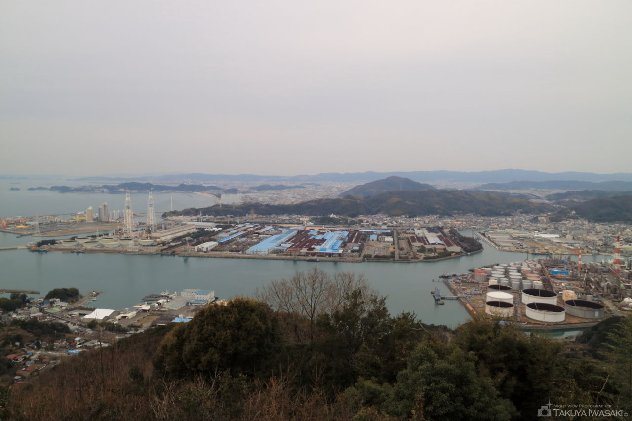 対岸の関西電力や製鉄工場を眺められる穴場スポット。工場との距離はありますが、車を停めて夜景を楽しめます。