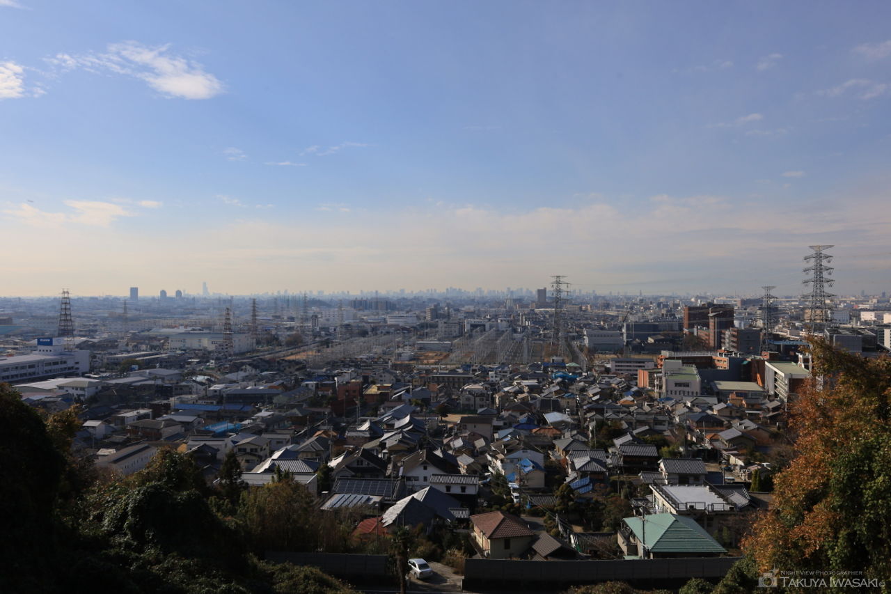 生駒山麓に位置する枚岡公園手前からはハイキングの名所として地元でも親しまれており、眺望スポットとしては額田山展望台や枚岡山展望台が有名です。