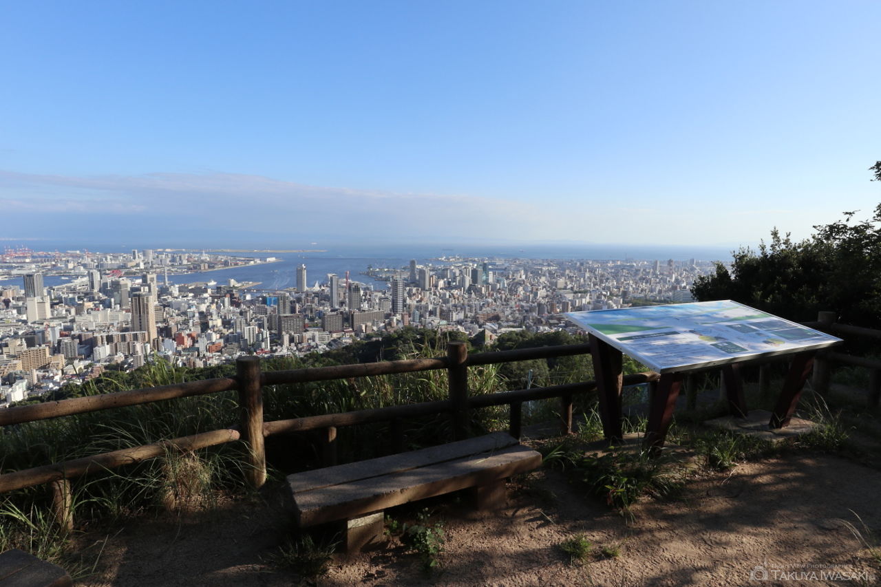 ヴィーナスブリッジ(テラス)の駐車場のすぐ横に登山道があり、案内に従って進むと視界が開け、高度ある神戸夜景が楽しめます。