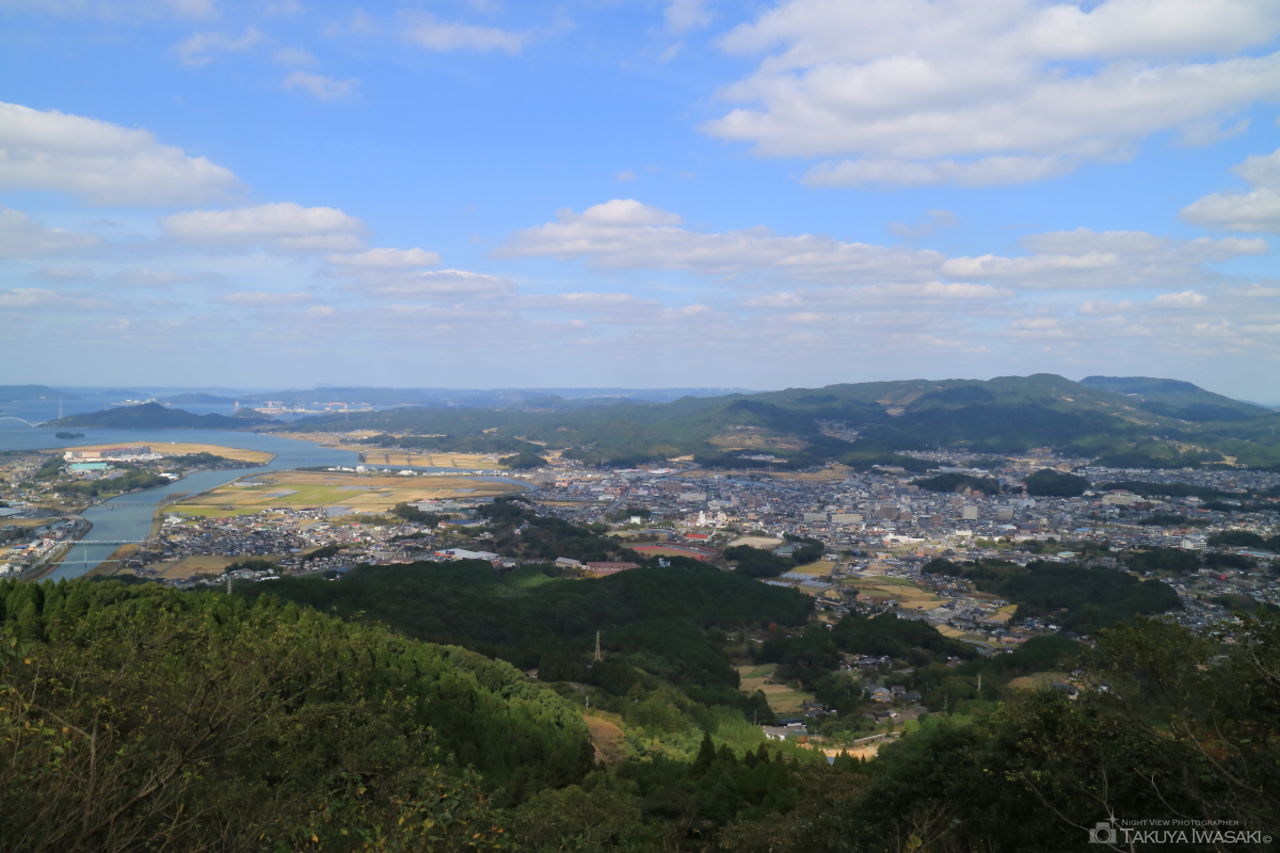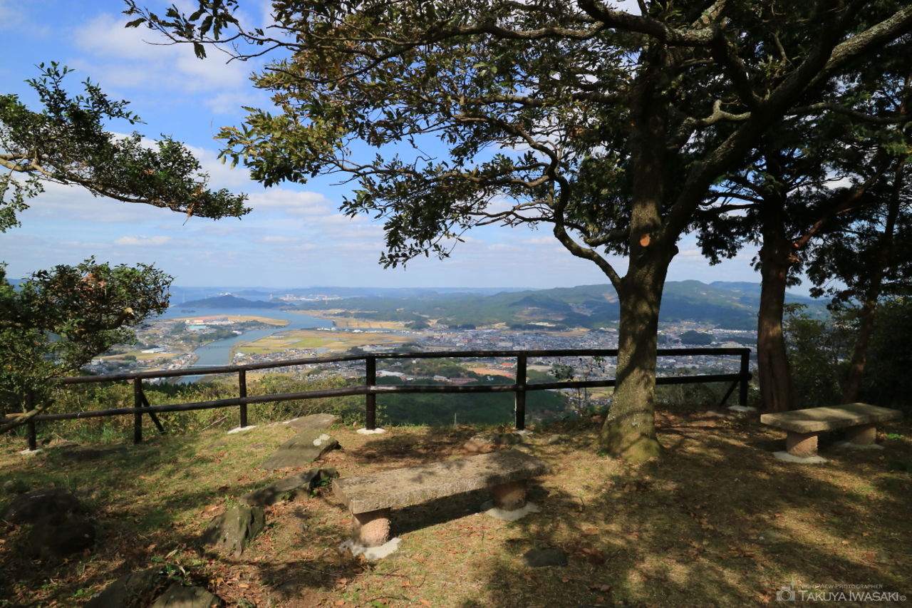伊万里駅から徒歩15分程度の場所にある公園。展望台へ向かう途中の歩道がビューポイントで伊万里駅周辺の街並みが見渡せます。