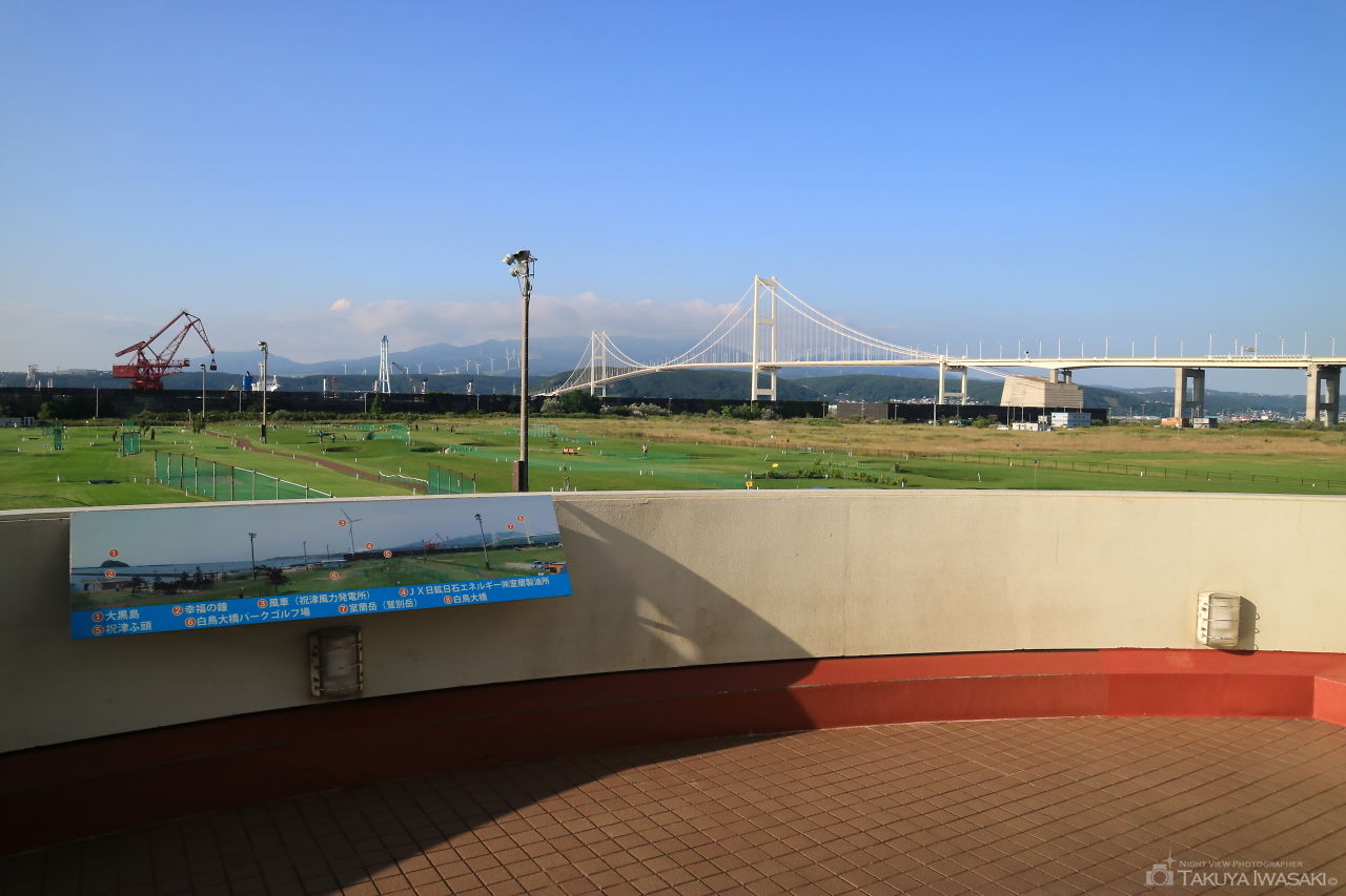 白鳥大橋のビューポイントとして、最もお勧めなスポットが白鳥大橋展望台です。展望台からは美しい白鳥大橋のライトアップを間近で眺められます。