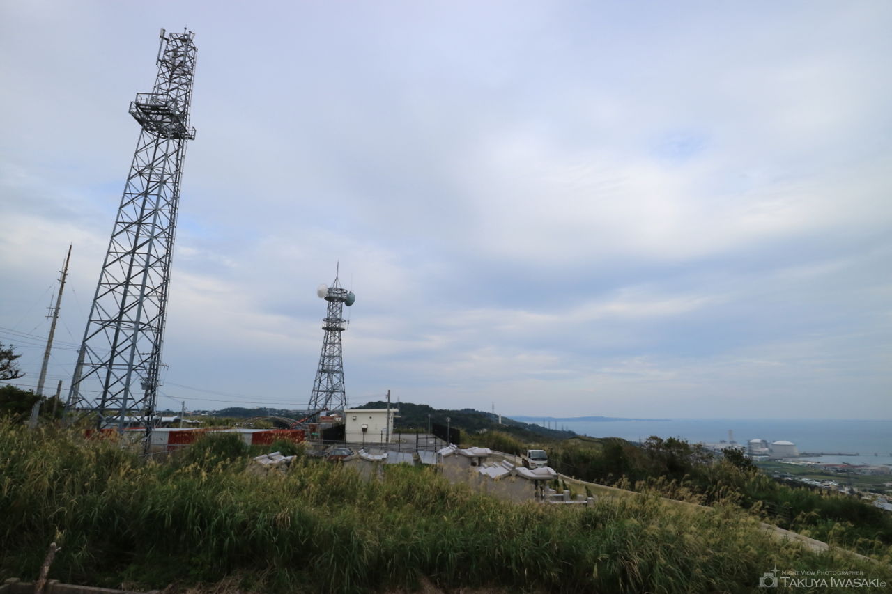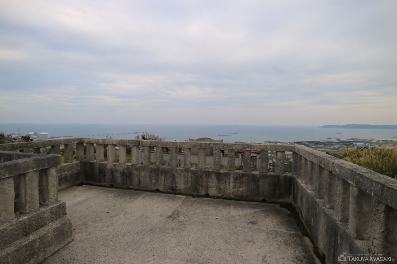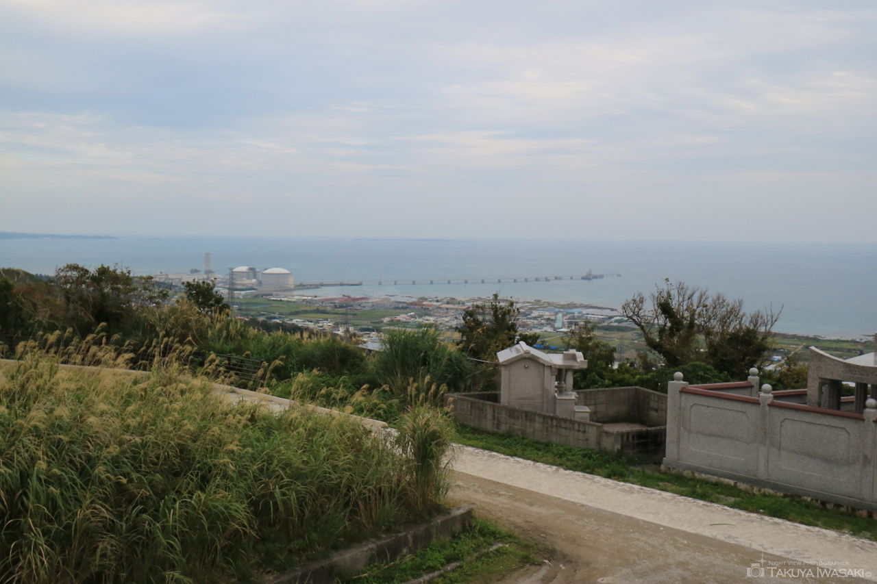 コスタビスタ沖縄の手前にある歩道がビューポイント。歩道から沖縄自動車道や米軍基地の明かりが見渡せます。
