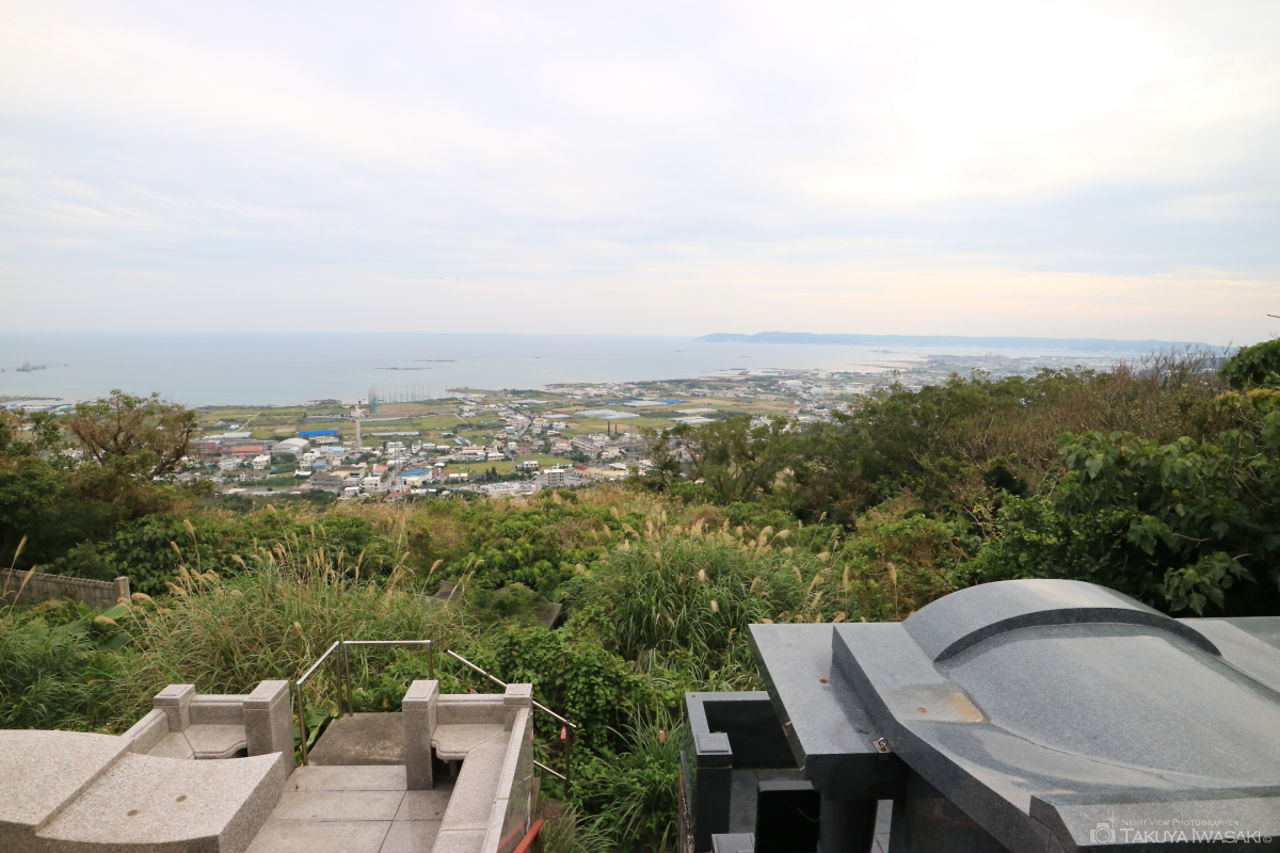 家族連れで賑わう上原高台公園は夜間になると訪れる人が少なくなり、西原町を中心とした夜景を眺められます。