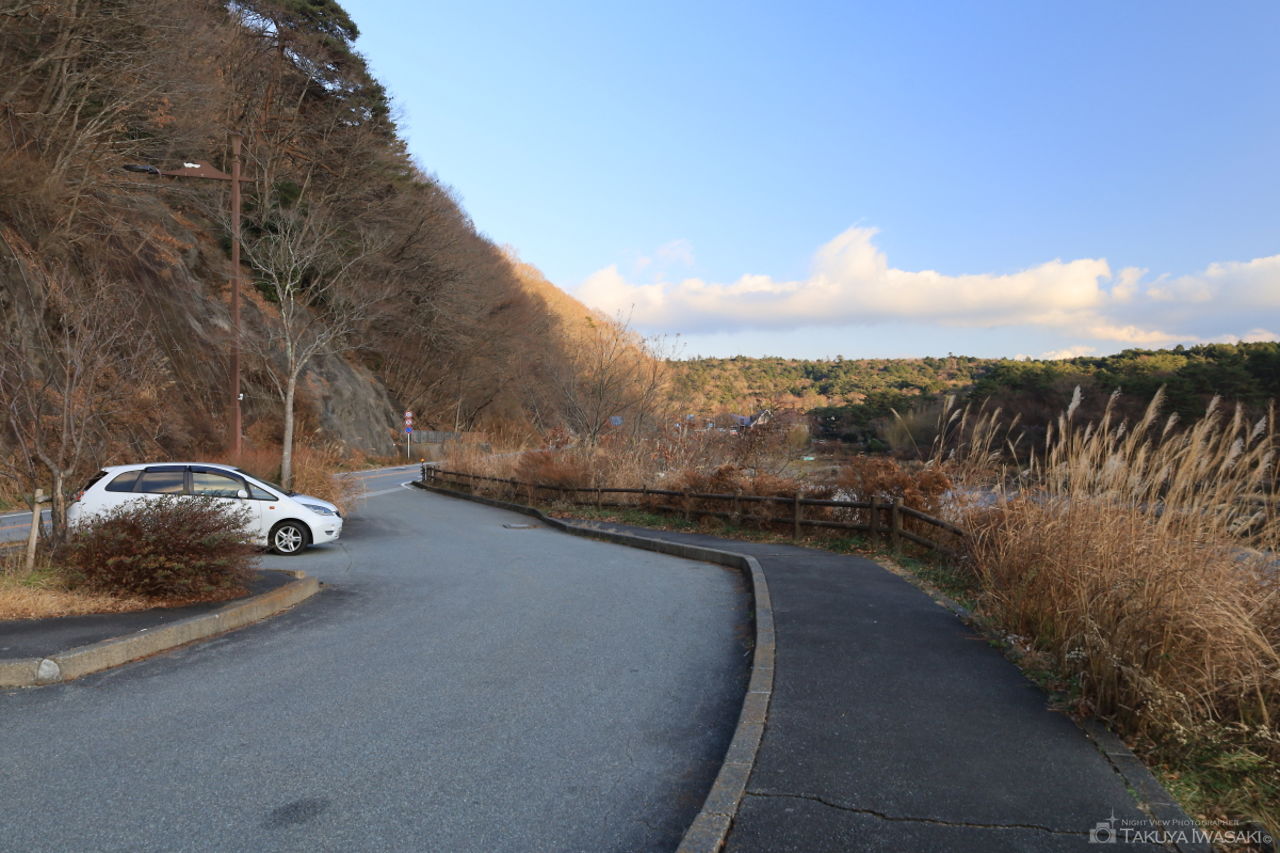 甲府盆地の夜景を車内から見渡せる穴場スポット。ビューポイントまでの道は舗装されており、アクセスは悪くありません。