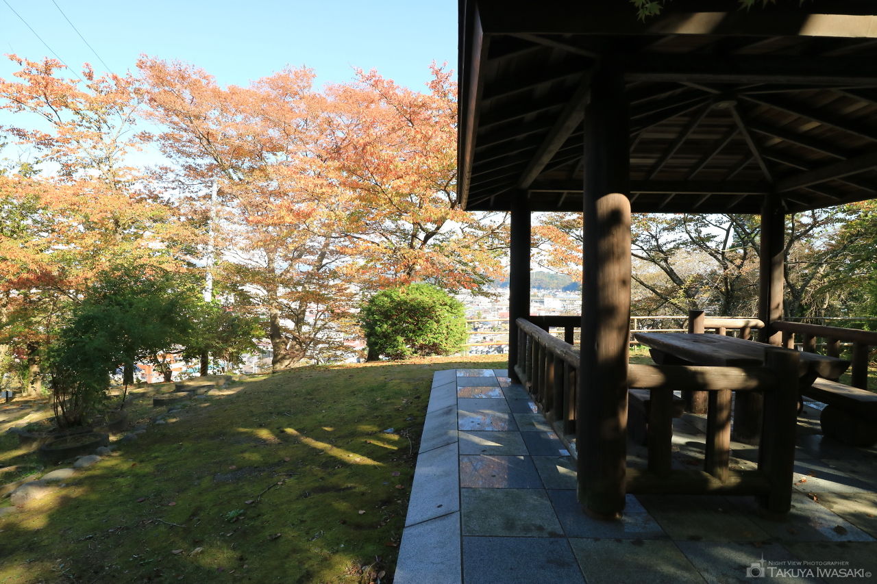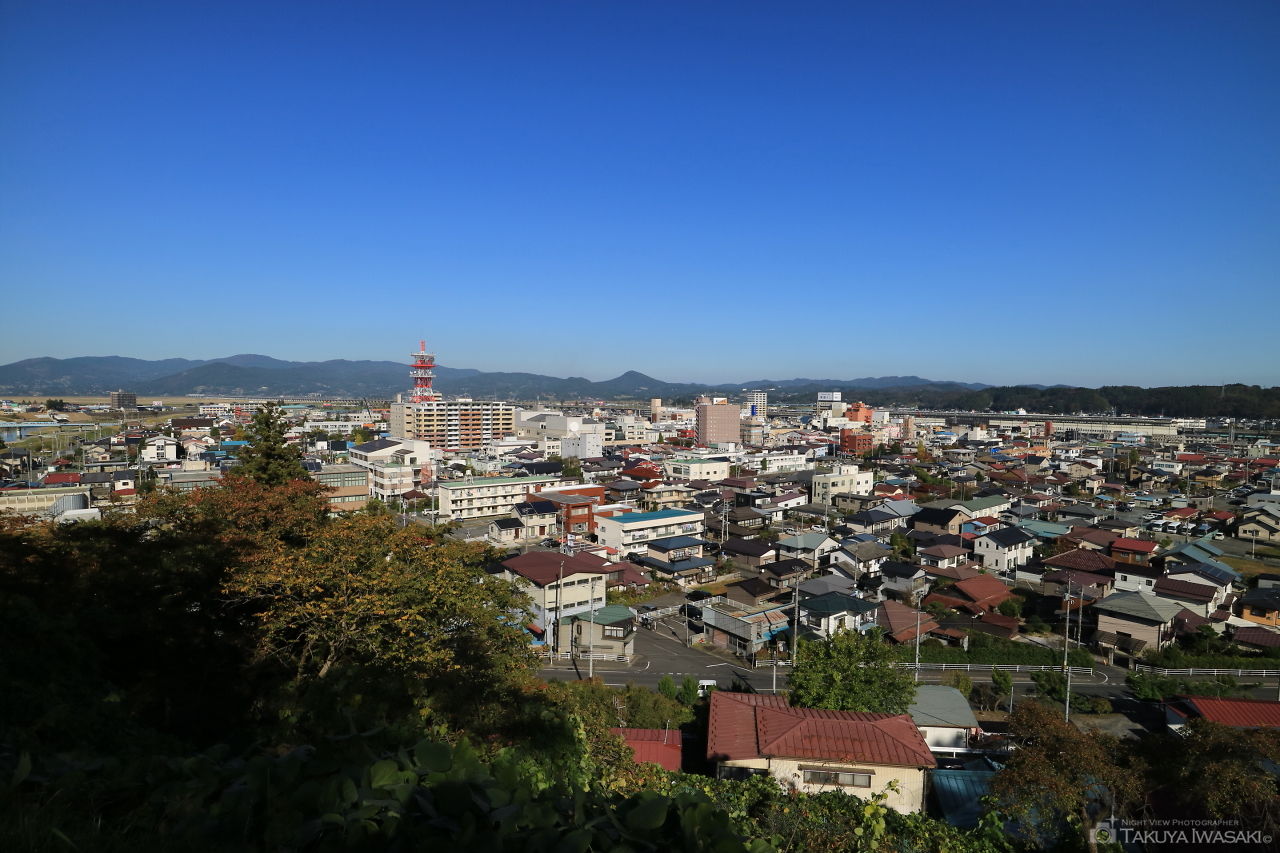 公園の奥にある展望台から一関市内の夜景を広範囲に見渡せます。展望台専用の駐車場は夜間は閉鎖されるため、少々きつい坂を歩く必要があります。