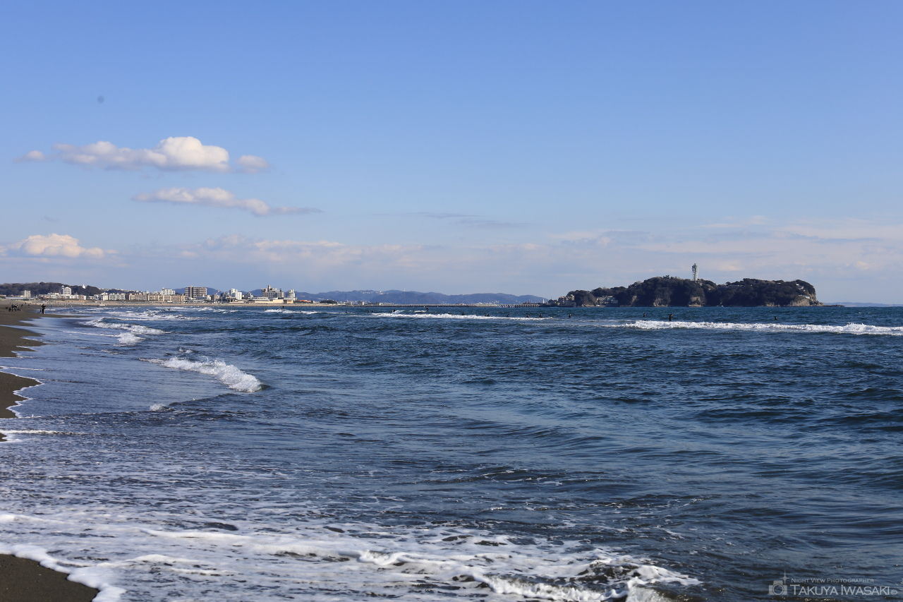 江の島サムエル・コッキング苑内にあるマイアミビーチ広場からは江の島大橋を中心とした夜景を眺められ、広場に併設されたカフェからも江の島エリアの夜景を楽しめます。