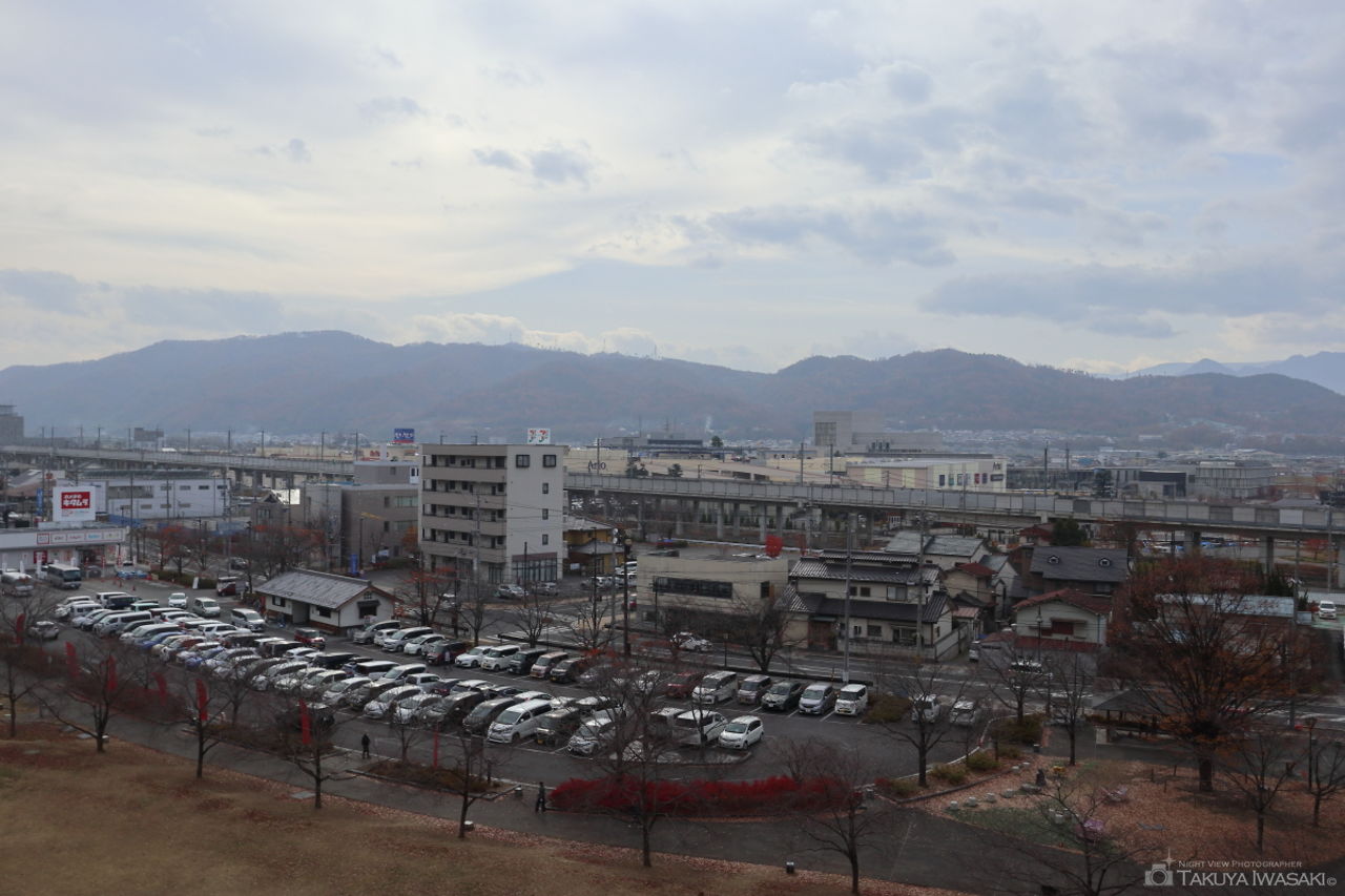 断崖絶壁の岩鼻の上にある公園からは、上田市内の夜景を見渡せます。街明かりとの距離が近く、迫力ある夜景となります。
