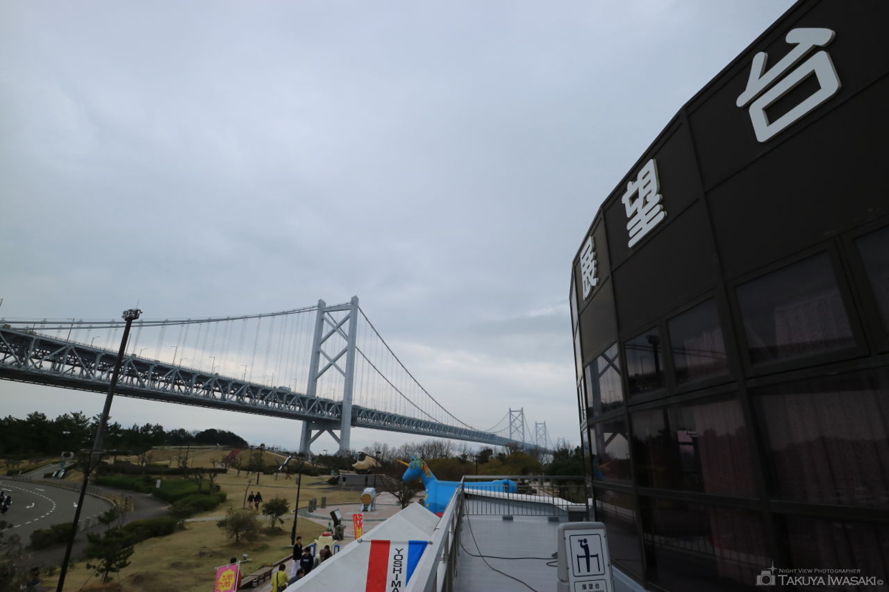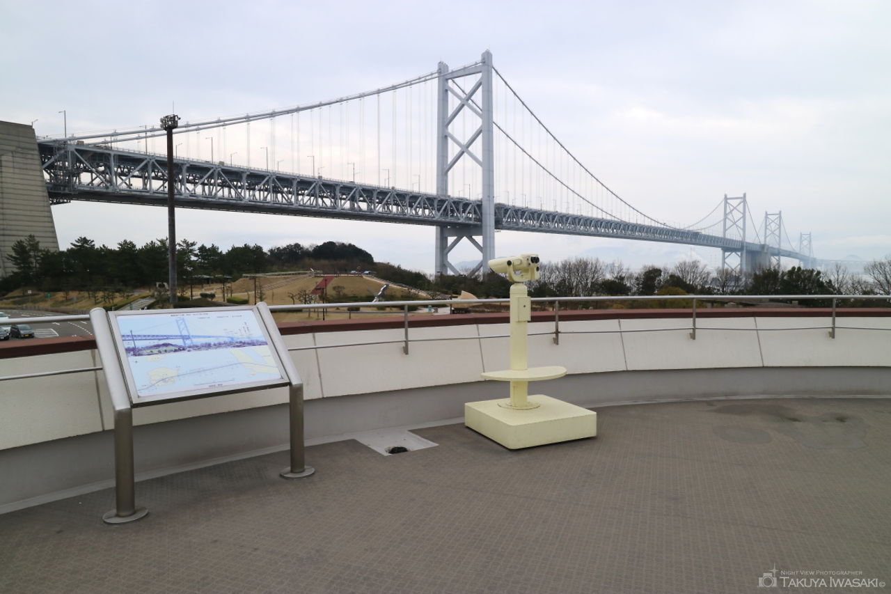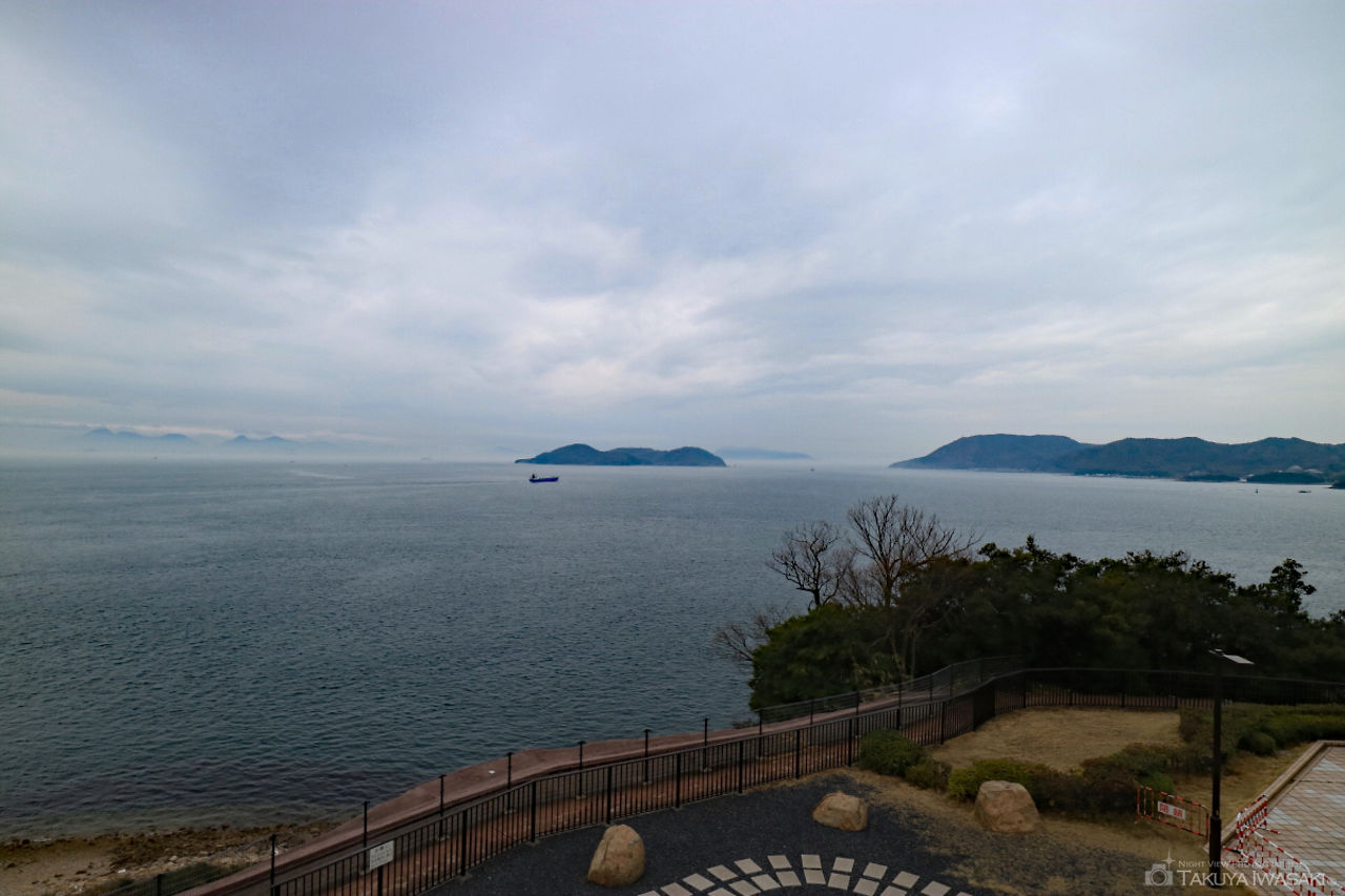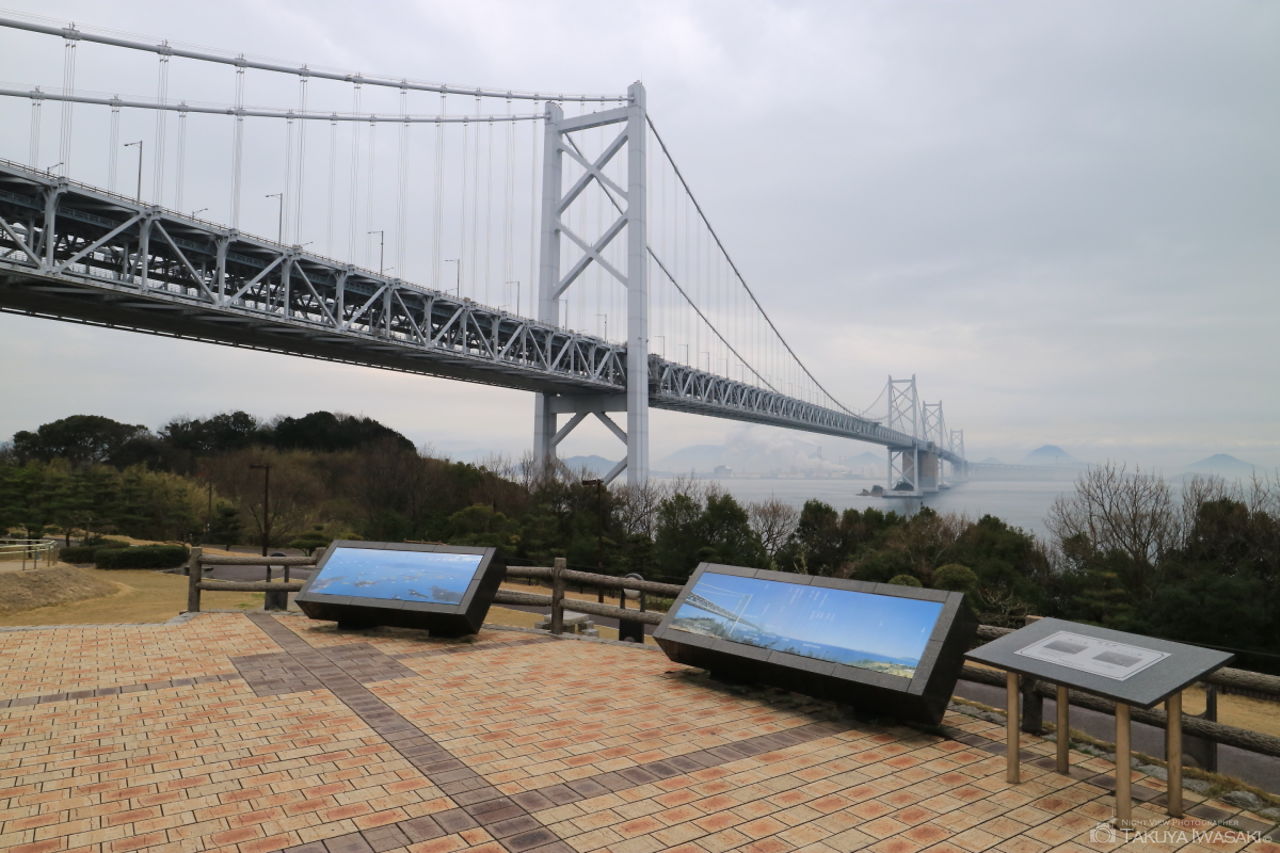 瀬戸大橋を広範囲に見渡せる海辺の展望台。夜間に訪問する人はほとんどいないため、運が良ければ展望台から貸切状態で夜景を楽しめます。