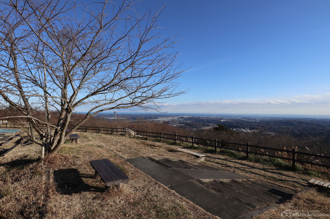 湯の岳パノラマラインを上った先に広大な駐車場があり、車を停めて3分ほど階段を進んだ場所に展望台があります。展望台からはいわき市の夜景を一望できます。